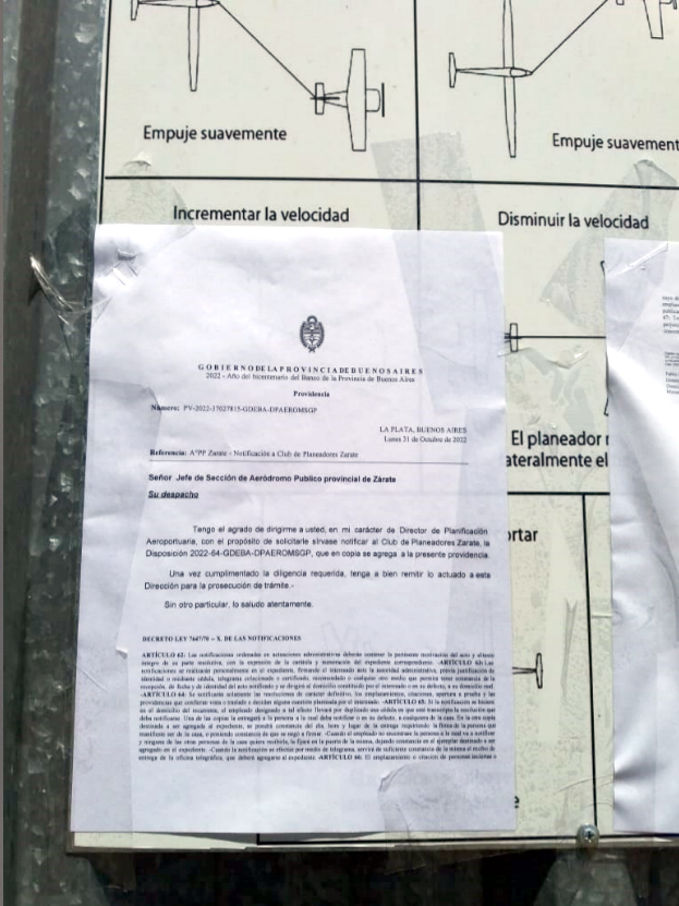 Pero en vez de convocar a las entidades aerodeportivas a dialogar, ambas fueron comunicadas mediante Disposiciones pegadas con cinta en los portones de sus respectivos hanares.