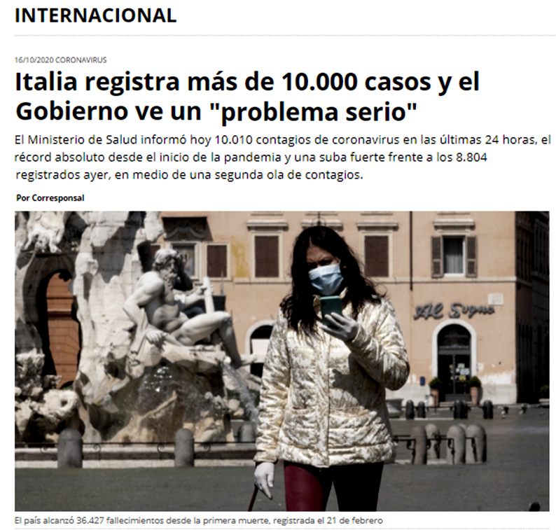 Esta semana, Italia superó por primera vez los 10.000 casos diarios de coronavirus y el Gobierno admitió hoy “un problema serio” en uno de los países que mejor había manejado la segunda ola de la Covid-19 en Europa, tras dejar abierta la puerta a otra estricta cuarentena nacional de ser necesario. Entrevistamos hace unos días en este Multimedios, al Sr. Giuseppe “Pepe” Libri, quién vive en Reggio, Calabria (sur de Italia), casado con una argentina de San Pedro (Bs As), para conocer la situación en aquel país europeo, que tanto tiene que ver con nuestro Zárate y la Argentina.