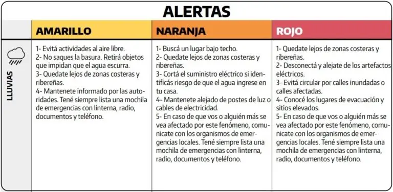 Los niveles de alerta del SMN implican mayor o menor de gravedad de los fenómenos, de acuerdo al color. En este caso, se emitieron alertas amarilla y naranja que implican los siguientes inconvenientes: