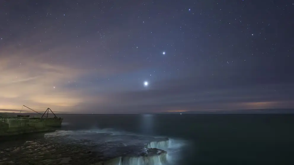 Así, estos cuerpos lograrán una de las distancias aparentes más cercanas del año, mientras otros planetas acompañarán la escena en diferentes posiciones sobre el horizonte.