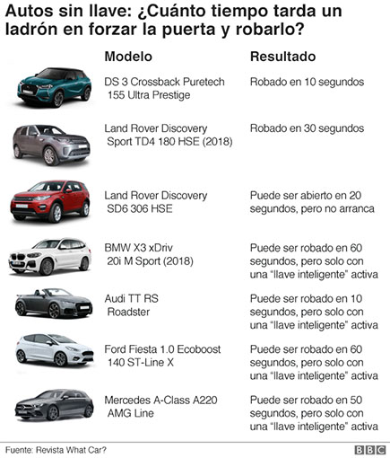 Para abrir sin llave un DS 3 Crossback y un Audi TT RS se necesitaron solo 10 segundos, mientras que para un Land Rover Discovery Sport TD4 180 HSE se requirió medio minuto.