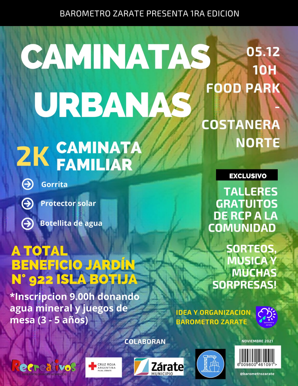La inscripción será desde las 9h del próximo DOMINGO 5/12 en una carpa instalada en la entrada a costanera norte desde Aristóbulo del Valle colaborando con agua mineral y juegos didácticos y/o mesa para niños de 3 – 5 años.
