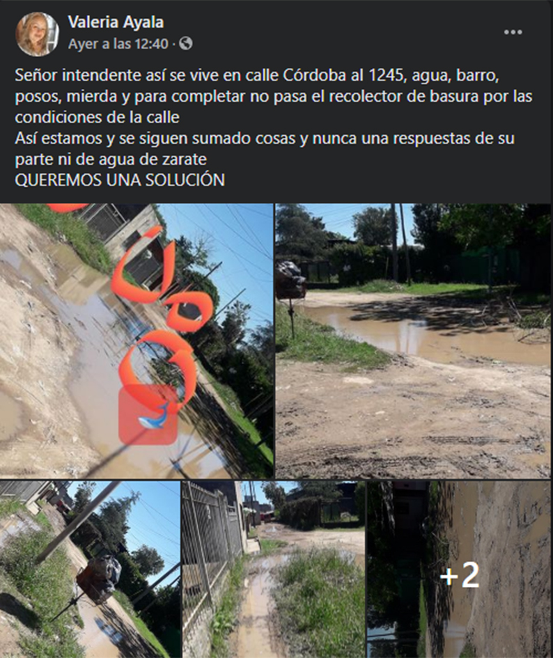La vecina Valeria Ayala, del Barrio Protierra de Zárate nos pregunta al programa con Zeta de radio EL DEBATE ¿se podrá hablar sobre un reclamo?, le voy a pasar unas fotos y si quiere le comento la situación. Obviamente la llamamos, porque es uno de los servicios de un medio de comunicación, la de ser la voz de los que no son escuchados, por el Municipio de Zárate y sus funcionarios, en este caso. Escucha los audios y verás lo insólito e increíble que nos cuenta.