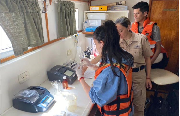 Además, recorriendo el Delta del Paraná, se realizaron tareas de investigación que consistieron en toma de muestras de agua y sedimentos y su posterior análisis en el laboratorio que posee el guardacostas a bordo.