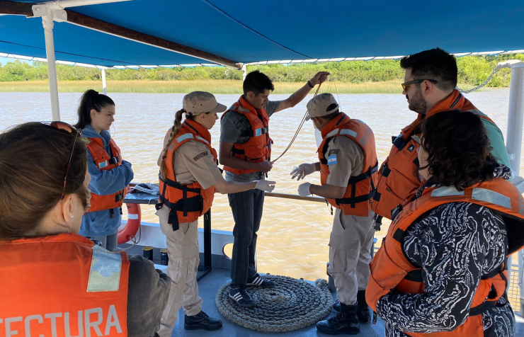 En el marco de la campaña “Concientizando, Cuidando y Controlando nuestro Río Paraná” que lleva adelante el buque científico “Dr. Leloir” de la Prefectura Naval Argentina, se realizó hoy una navegación de instrucción e investigación de la que participaron alumnos de la Maestría en Gestión del Agua, dependiente de la Facultad de Veterinaria de la Universidad de Buenos Aires.