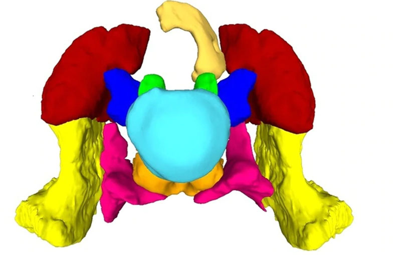 Más allá del hallazgo del material en sí, una de las particularidades del trabajo radica en el método utilizado para su estudio posterior. Valiéndose de tomografías computadas y utilizando un software especial, los expertos pudieron diferenciar digitalmente y con mucha precisión los huesos del sedimento adherido a ellos, para lograr identificar con exactitud cada estructura ósea.