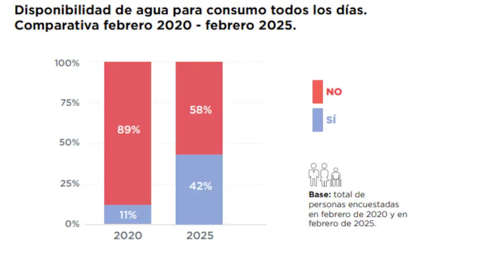 El porcentaje de hogares con tanques de almacenamiento subió del 53% en 2020 al 74% en 2025, algo que permitió sortear problemas de disponibilidad.