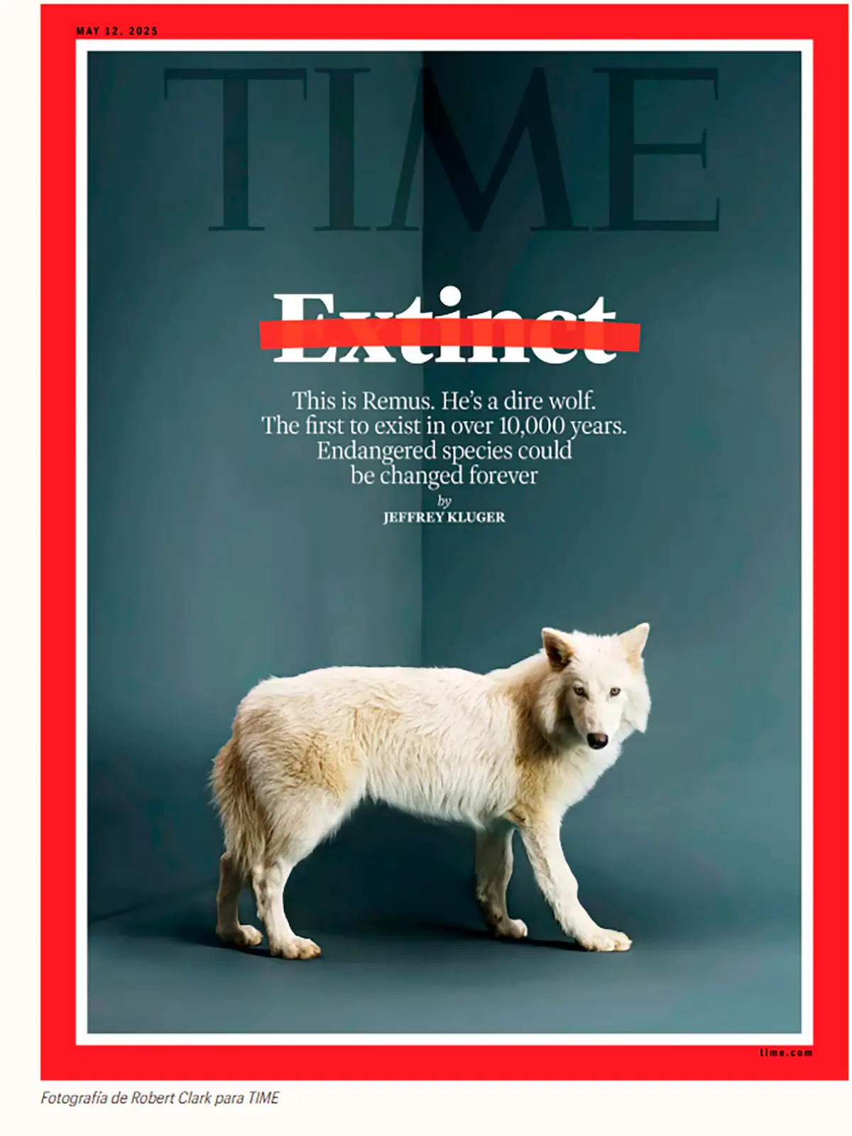 La “desextinción” del lobo terrible en la portada de revista Time ( fotografía de Robert Clark para TIME)