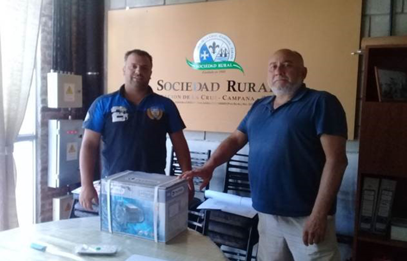 En el día de ayer -dice el comunicado-, miércoles 4 de diciembre , el Coordinador de la Comisión de Seguridad de la Sociedad Rural Sr. Pedro Querencio hizo entrega en nombre de la misma y en carácter de donación al Comando de Prevención Rural Zarate (Patrulla Rural) , representado por su Jefe -Comisario Maximiliano Fiore – de una bomba marca Pluvius de 1 HP y de todas las cañerías y acoples necesarios para restablecer la provisión de agua en la posta policial rural ubicada en la ex – estación Atucha.