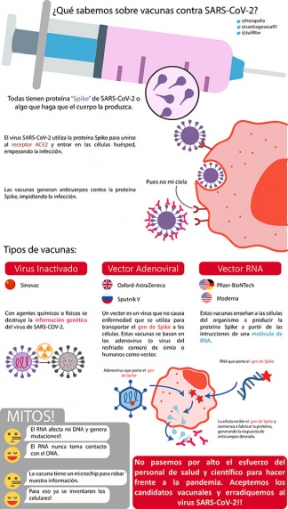 Las infografías explican de manera sencilla cómo funcionan las diferentes vacunas aprobadas con carácter de emergencia a nivel mundial y el modo en que generan una respuesta inmune.