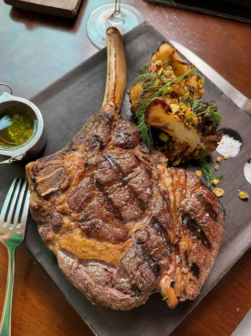 El programa de carnes incluye cortes seleccionados y maduración in situ. El informe precisó: “En el corazón de la experiencia se encuentra un excepcional programa de carnes, que incluye los mejores Black Angus argentinos, Wagyu local y cortes madurados en seco en casa. Cada filete se asa con maestría a la llama para realzar su sabor, textura y aroma. La simplicidad es clave, permitiendo que la calidad de la carne brille con solo un toque de sal y fuego”.