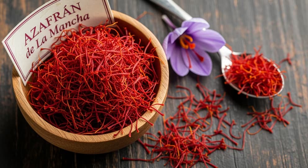 La región de La Mancha, en España, produce un azafrán reconocido mundialmente por su pureza. El azafrán manchego se distingue por su comercialización exclusiva en hebras y su proceso de tostado, que intensifica el aroma y la potencia colorante. Los estigmas, de color rojo intenso, superan los 22 milímetros de longitud y aportan un sabor amargo con persistencia tostada. Su uso en la cocina requiere precisión, ya que su potencia supera las 200 unidades de crocina, el pigmento natural responsable de su color característico.