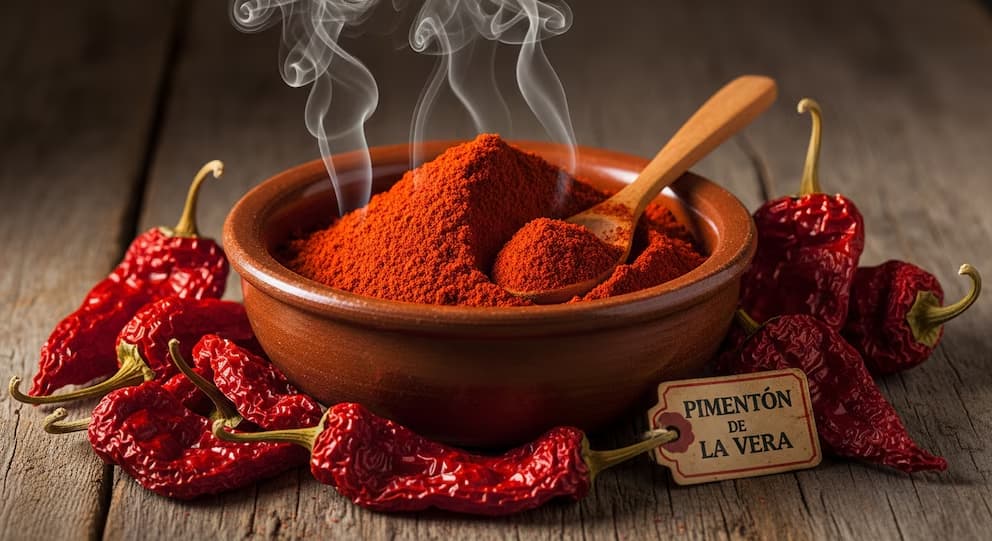 En el oeste de España, la comarca de La Vera produce un pimentón ahumado que ha alcanzado fama internacional. El proceso de secado con humo de leña de encina y roble, durante 10 a 15 días, otorga al Pimentón de la Vera un aroma y sabor ahumado únicos. Esta técnica garantiza una estabilidad de color y una versatilidad que permite su uso en versiones dulce, agridulce y picante. El pimentón de La Vera es fundamental en platos como el pulpo a la gallega y la fabada asturiana.