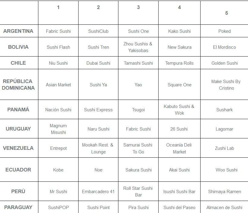 Durante el año pasado se observó que en la región los usuarios de la plataforma hicieron más de 3.300.000 pedidos de sushi, lo que representó más de 80 millones de piezas, más de 675 kilos de arroz, 840 kilos de salmón, más de 10 millones de algas nori, más de 3.3 millones de paltas y 336 kilos de queso phila.