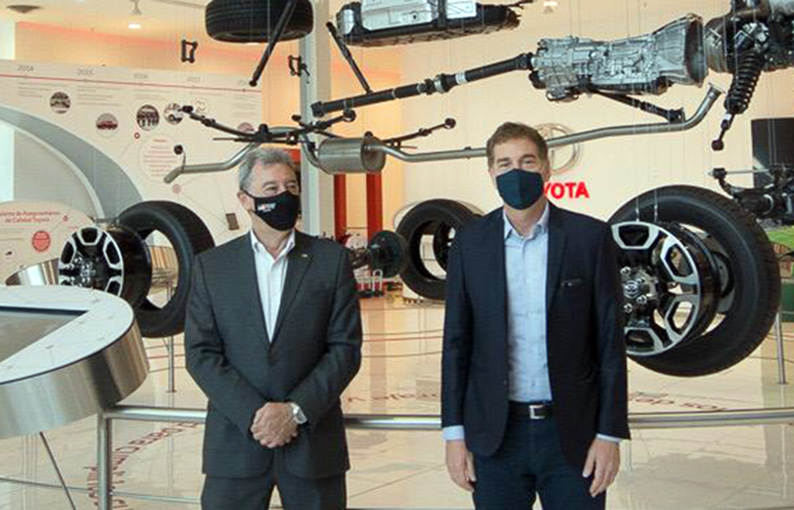 Los funcionarios recorrieron la planta y mantuvieron una reunión con el presidente de Toyota Argentina, Daniel Herrero, quien fue el encargado de anunciar que a fines de año se hará la entrega de los nuevos patrulleros.