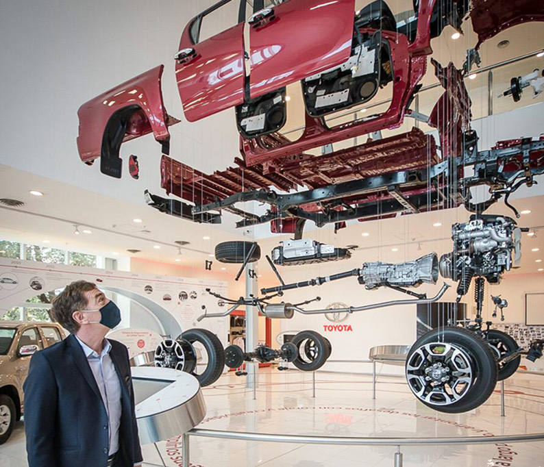 DIEGO EN EL VISITOR CENTER, OBSERVANOD LA IMPONENTE HILUX EXHIBIDA DESPIEZADA