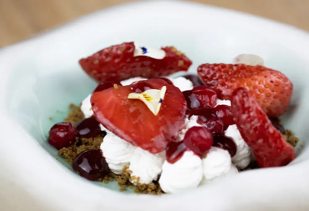 - Fresas ahumadas con nata y bellota
