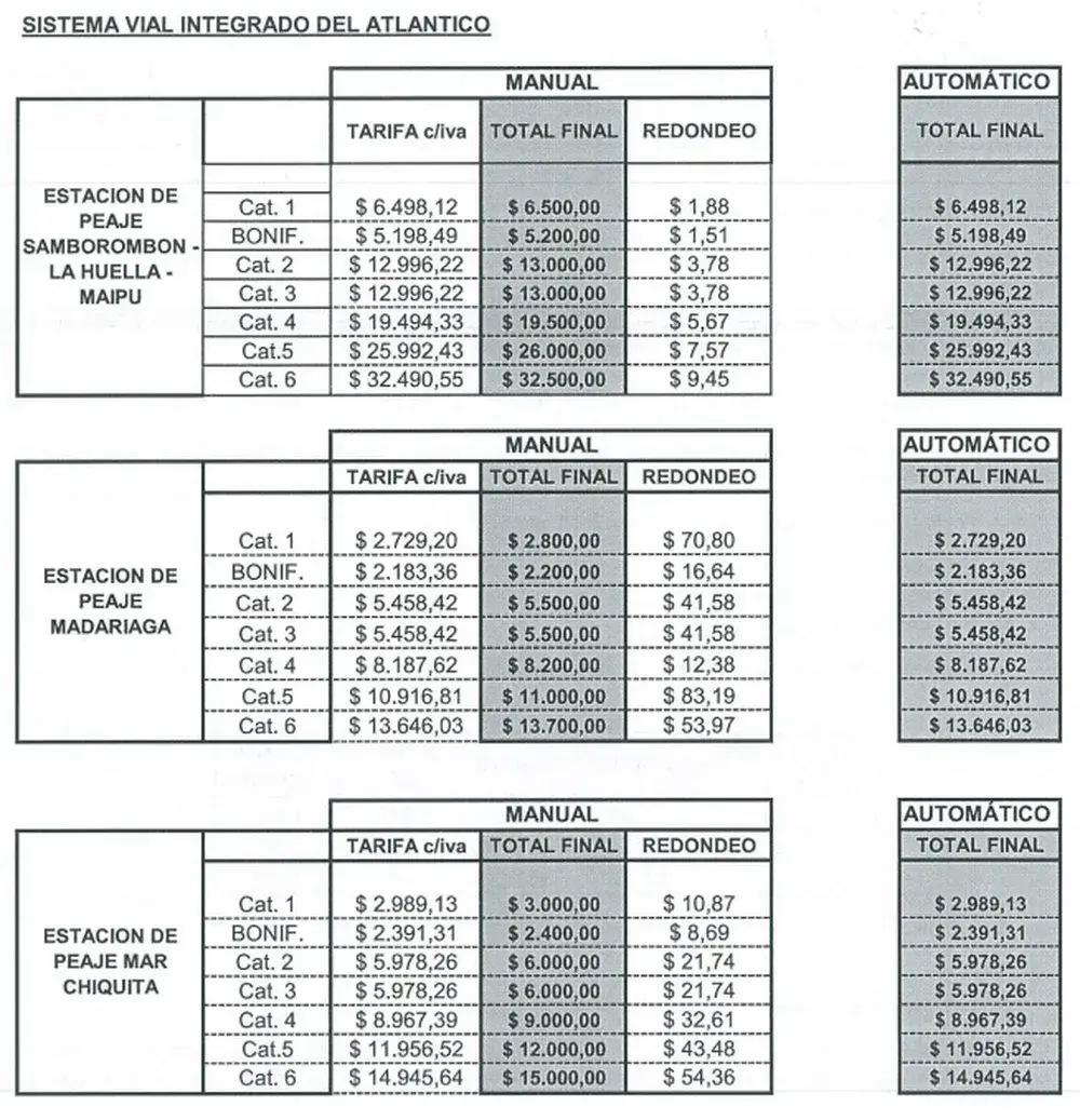 En el caso de la estación de peaje de Madariaga, para la categoría 2 habrá que abonar $5.500 y en la de Mar Chiquita $6.000. (DIB)
