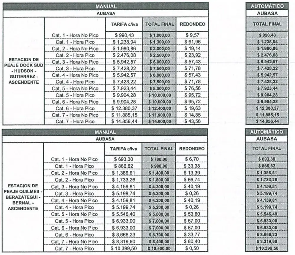 El Ministerio de Infraestructura y Servicios Públicos bonaerense le autorizó el nuevo cuadro tarifario de los peajes a la empresa Aubasa. Los cuadros desde octubre.