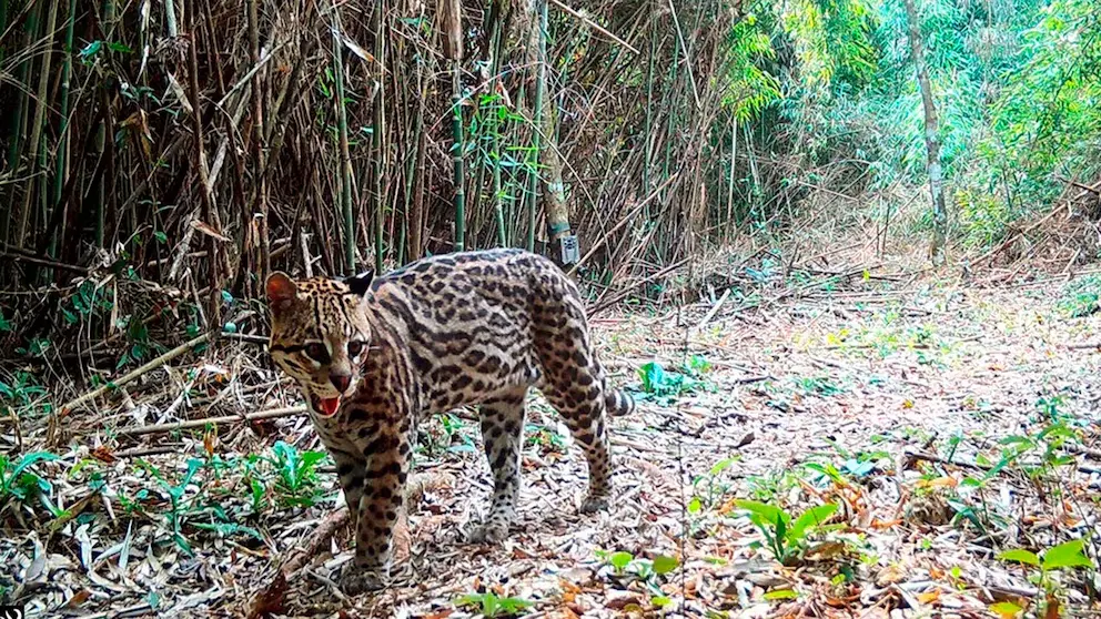 Un individuo salvaje de Leopardus pardalis fue movilizado entre hábitats naturales para restaurar su población.