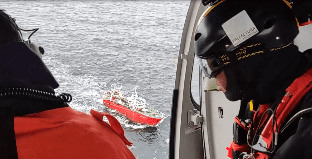 El hombre, de 55 años, sufría un principio de ACV y estaba medicado contra la diabetes. Personal especializado de la Prefectura Naval Argentina, Autoridad Marítima del país, aeroevacuó, en una milimétrica maniobra realizada a alrededor de 250 kilómetros de Trelew, a un tripulante de un buque pesquero que sufría síntomas compatibles con un accidente cerebrovascular (ACV) y necesitaba atención médica urgente.