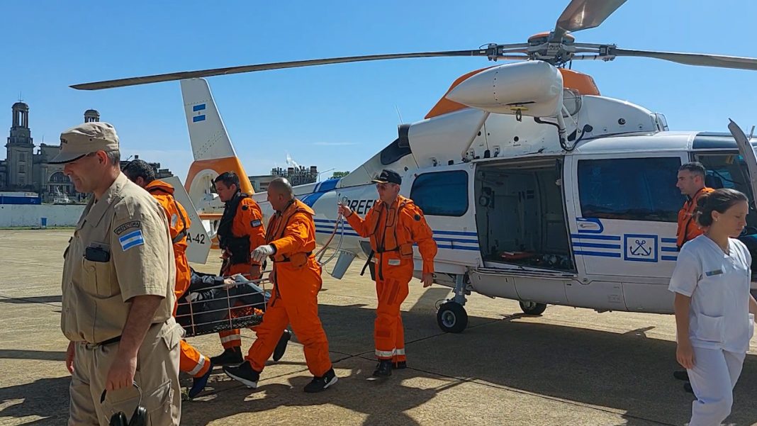 El hombre, de 44 años, fue asistido por su tripulación, que, al lograr reanimarlo, advirtieron sangre en su nariz y dificultades en el habla. Rápidamente se comunicaron con la Autoridad Marítima nacional donde, a través de una radio consulta, un médico de la Institución indicó la inmediata aeroevacuación.