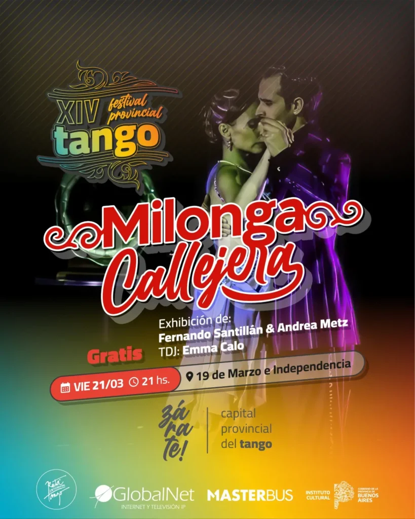 El festival arrancará el viernes 21 de marzo con actividades culturales que culminarán en una noche especial. A partir de las 21 horas, la esquina de 19 de Marzo e Independencia será testigo de una vibrante Milonga Callejera, un espacio donde los vecinos y visitantes podrán sumergirse en la magia del tango bajo las estrellas. La actividad contará con la exhibición de baile a cargo de Fernando Santillán y Andrea Metz, reconocidos exponentes de la danza, mientras que el TDJ Emma Calo será el encargado de musicalizar la velada con una selección de tangos memorables.
