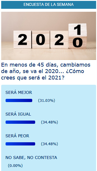 La mayoría esperan que sea igual y algunos que sea peor. Esto no es bueno. Que tantos piensen que la expectativa, el deseo o la ilusión, no esté, en que el próximo año sea mejor que el 2020.