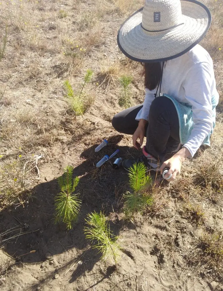 En su estudio, Alma probó una estrategia llamada push-pull —o estímulo disuasivo— en base a compuestos vegetales. “Está poco explorada en plantaciones forestales. El objetivo es modificar el comportamiento de las hormigas para disminuir sus daños. Esto se hace aplicando a la vez un compuesto repelente que las aleja de los pinos, y otro que las atrae hacia un recurso alimenticio alternativo”.