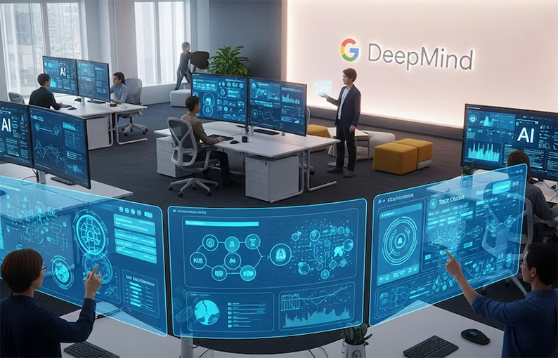 Colaboración entre humanos y asistentes de inteligencia artificial en un entorno innovador impulsado por Google DeepMind. (Imagen Ilustrativa Infobae)