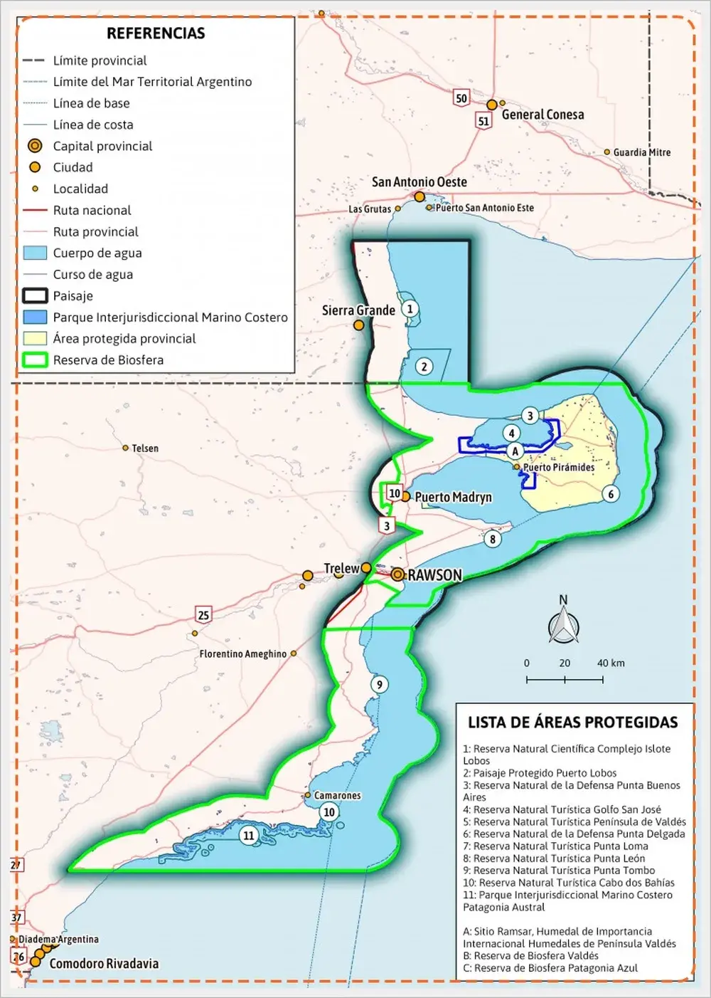 El Parque Provincial Patagonia Azul fue creado recientemente, en 2025, y abarca una zona costera de 295.135 hectáreas.