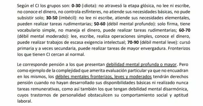 “Es una barbaridad. Esto es de principios del siglo pasado. Esa terminología se utilizaba en los inicios de la psiquiatría, antes de que existiera la medición del coeficiente intelectual (CI). A partir de entonces, cuando se quieren establecer categorías dentro de la disminución intelectual, se utiliza el rango del CI. Pero esto no es más que parte del atropello que vienen sufriendo las personas con discapacidad por parte de este Gobierno, no es casual. Es una forma peyorativa y estigmatizante de referirse a una persona con discapacidad. Es indignante”, había dicho antes de la marcha atrás oficial Eduardo Maidana, miembro del Foro Permanente de Promoción y Defensa de los Derechos de las Personas con Discapacidad, en el que representa a Aiepesa (entidad civil que nuclea instituciones educativas, terapéuticas y asistenciales, dedicadas a la atención de personas con discapacidad). Citado por el diario La Nación, había agregado: “Además, lo que más indigna es que esto sale firmado por la Andis, que es quien debería representar los derechos de las personas con discapacidad, y velar por el cumplimiento de la Convención Internacional de Discapacidad, a la que Argentina adhiere desde 2006″.