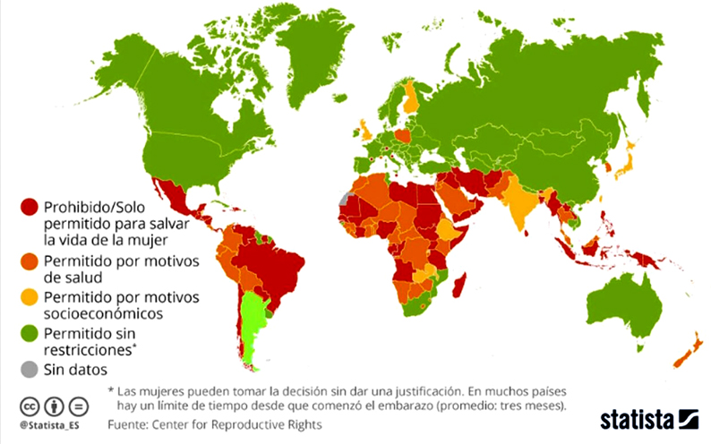 El mapa mundial muestra que ya se permite abortar legalmente en Albania, Armenia, Australia, Austria, Azerbaiyán, Bielorrusia, Bélgica, Bosnia- Herzegovina, Bulgaria, Camboya, Canadá, Cabo Verde, China, Croacia, Cuba, Chipre, República Checa, Corea, Dinamarca y Estonia. Ocurre lo mismo en Francia, Georgia, Alemania, Grecia, República de Guinea-Bisáu, Guyana, Hungría, Irlanda, Italia, Kazajistán, Letonia, Lituania, Luxemburgo y Maldivas.