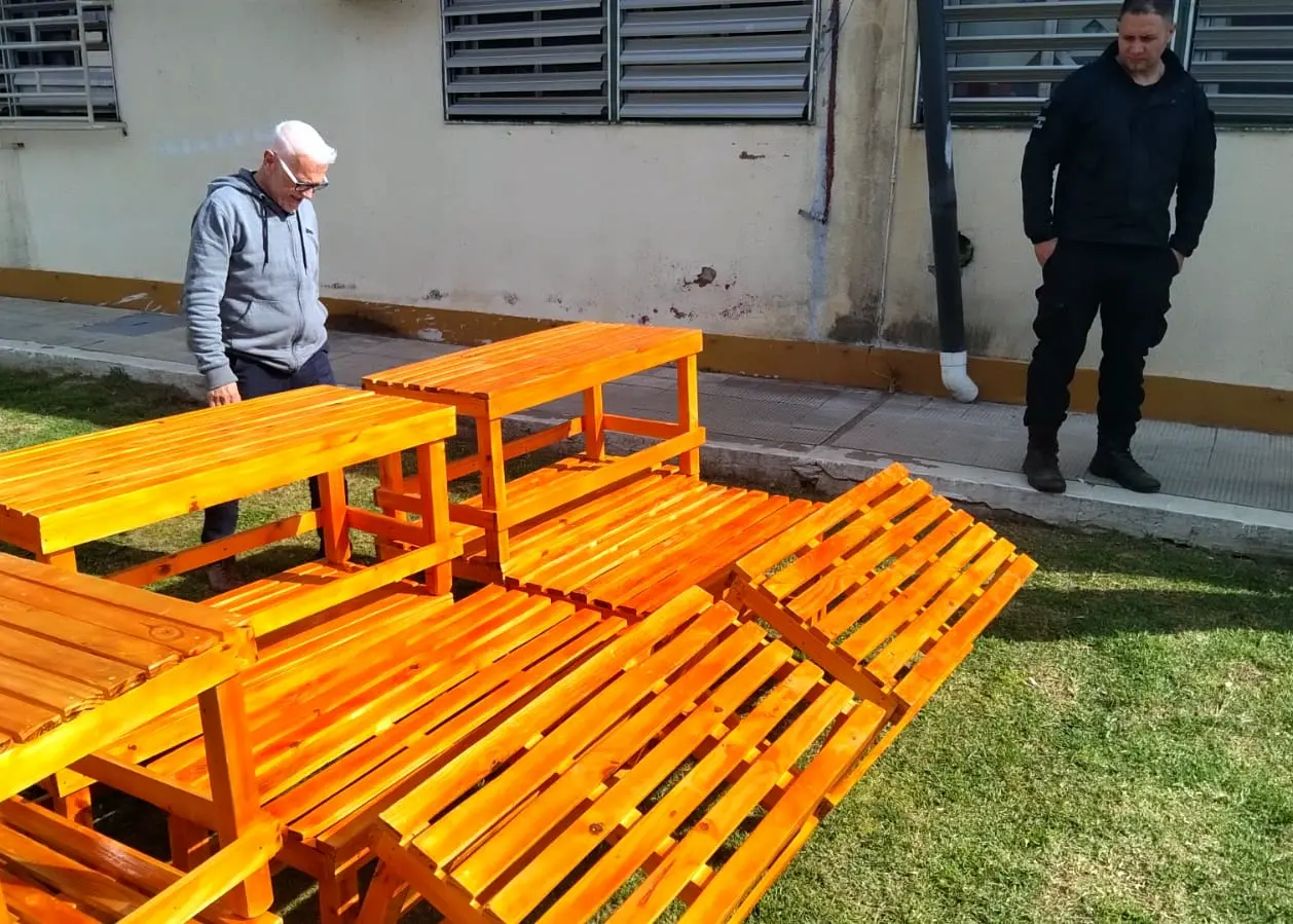 Personas privadas de libertad alojadas en la Unidad 41 del Servicio Penitenciario Bonaerense, en Campana, construyeron y donaron diez bancos de madera destinados a las salas de espera del Hospital Zonal de Agudos de Zárate.