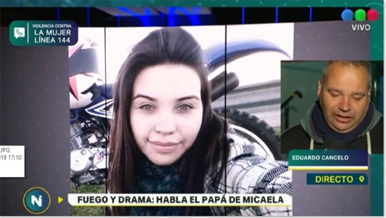 Eduardo Cancedo papá de Micaela la joven de 22 años que permanece internada en grave estado, con el 15 por ciento del cuerpo quemado en el Hospital del Quemados del barrio porteño de Caballito, dijo este sábado que su hija intentó inmolarse al descubrir que su pareja tenía “otra relación de pareja”.