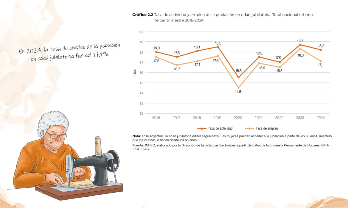 En la Argentina, jubilarse no siempre significa retirarse. De acuerdo con el último dosier estadístico que publicó el INDEC sobre personas mayores, el 17,1% de los adultos en edad jubilatoria sigue trabajando. La mayor actividad laboral se concentra en la franja de 60 a 74 años, mientras que se desploma a partir de los 75.