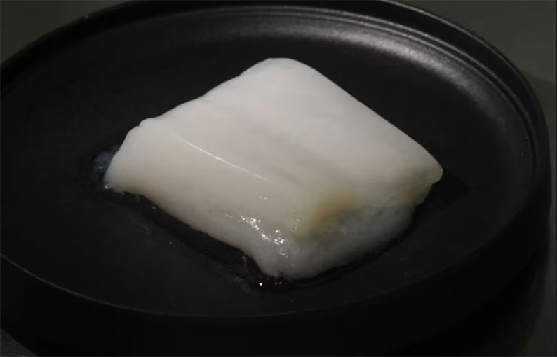 Los científicos de la Universidad de Tokio, bajo la dirección del profesor Shoji Takeuchi, han logrado crear una pieza de pollo que mide 7 centímetros de largo, 4 centímetros de ancho y 2,25 centímetros de grosor, con un peso de 11 gramos.