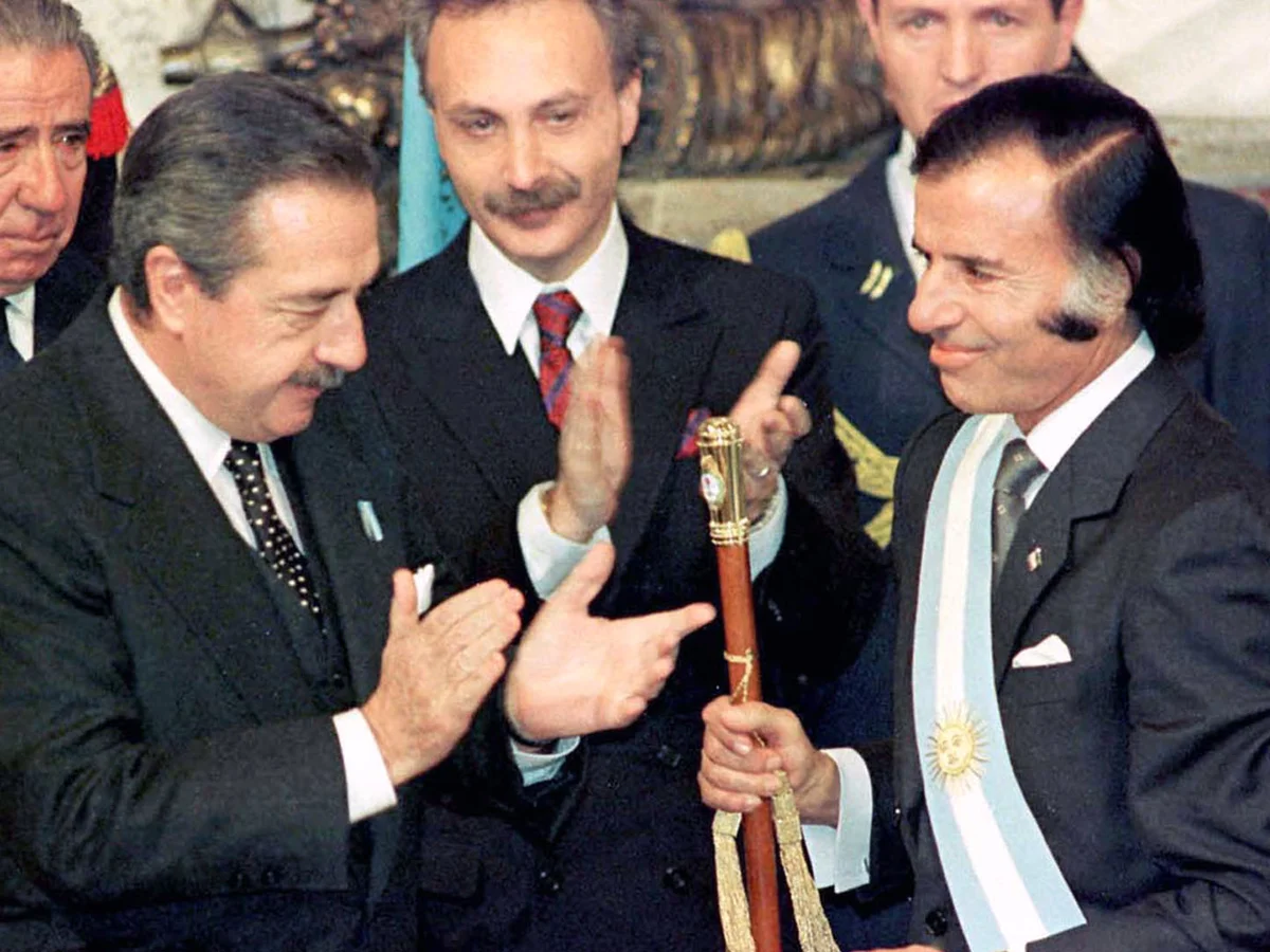 1989 – TRASPASO DE MANDO. El presidente Raúl Alfonsín anuncia por cadena nacional su decisión de “resignar su cargo” ante la grave situación del país y adelantar el traspaso de mando a Carlos Menem, ganador de las elecciones presidenciales quien asumió el 8 de julio de 1989, cinco meses y dos días antes de lo previsto.