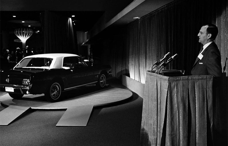 Comité Fairlane fue como Iacocca bautizó al equipo que bajo su dirección empezó a diseñar entonces la estrategia de un nuevo modelo que reemplazara al proyecto del Cardinal. Aquel conjunto de jóvenes talentos se encontró con un escenario desafiante, además de poco tiempo para el deadline prestablecido: el vehículo debía estar listo para abril de 1964, para su debut en la Feria de Nueva York.