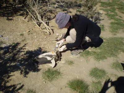 El trabajo de campo incluyó el recuento de cadáveres, la ubicación y la toma de datos biométricos, para estudiar mejor el impacto de la predación por parte de los pumas. © Esteban Frere 2007