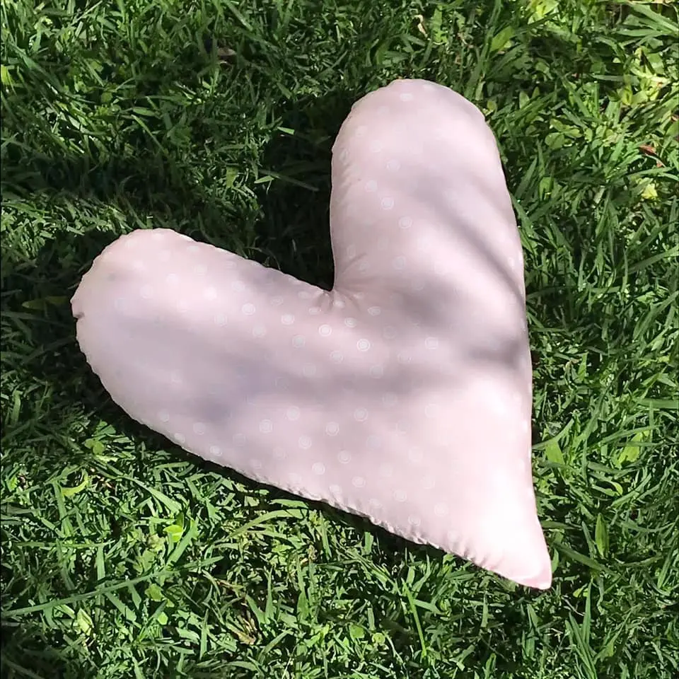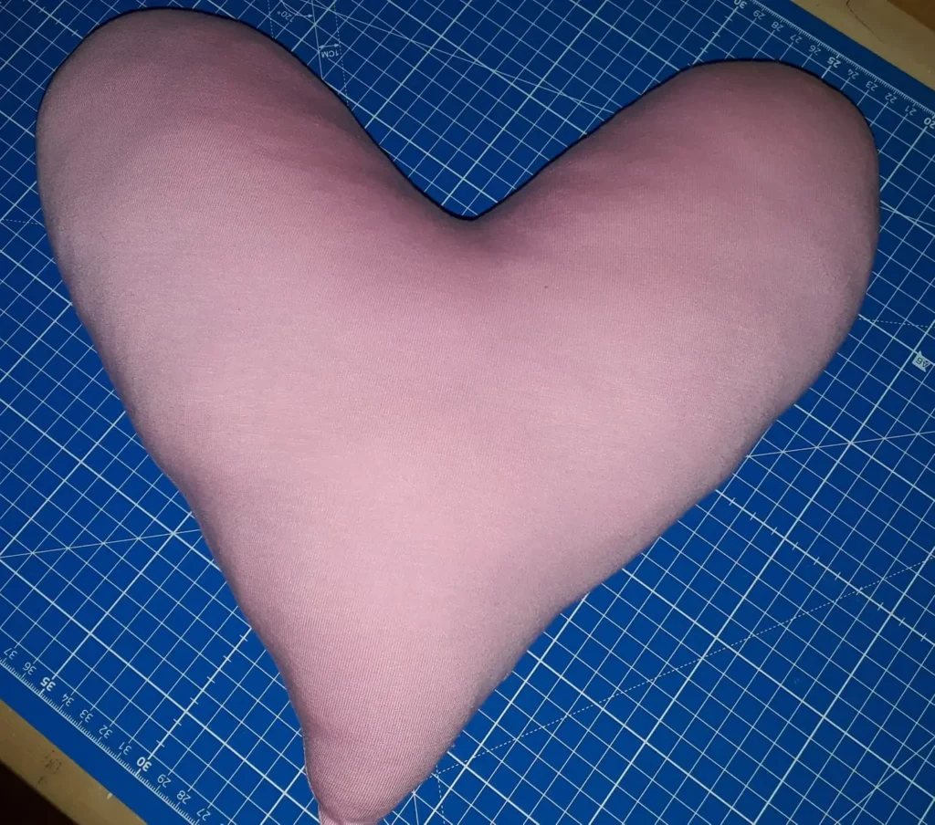 Los corazones se confeccionan con tela de algodón tipo jersey y se rellenan con vellón, un material similar a la guata, pero de poliéster. Es fundamental que la tela exterior sea de algodón para evitar calor y proteger la piel en la zona de la herida. Cada corazón pesa aproximadamente 200 gramos y se fabrica con mucho cariño, siendo lavable y cómodo para las usuarias.