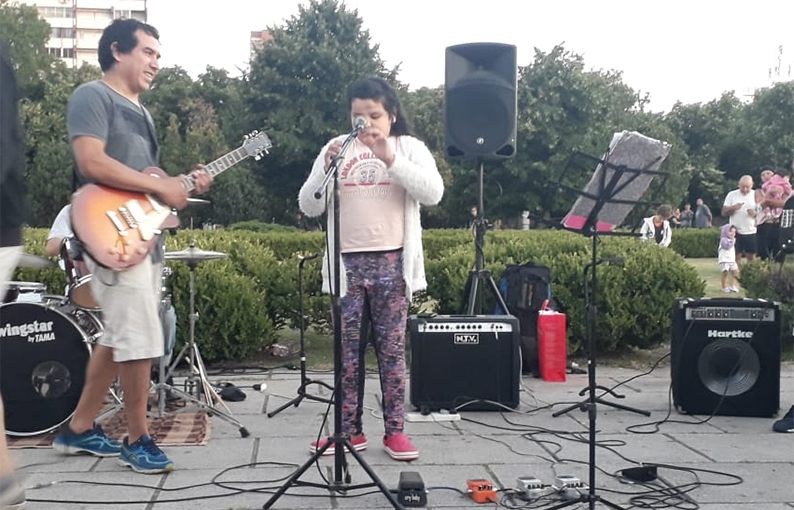 Por su parte, Malvina, la mamá de Victoria Amante, quien fue la voz principal de “Inconsciente colectivo” en La Plata, contó que se enteraron de la movida en septiembre y de inmediato se contactó con Juan Carr para ver si su hija podía sumarse. “Fuimos organizando todo y acá estamos”, contó emocionada. Vicky, de 9 años, que cantó con soltura acompañada por una banda junto a todos los presentes, dijo que comenzó “hace poco a estudiar canto” y también escribió un libro a los 7 años.