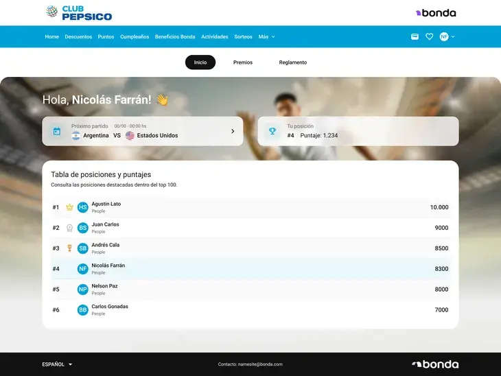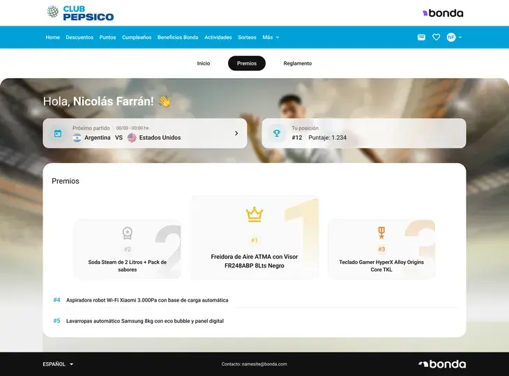 La mecánica es intuitiva: los usuarios acceden con su perfil, cargan sus pronósticos y acumulan puntos. Al concluir el certamen, las empresas utilizan los resultados para premiar a los ganadores con Gift Cards digitales, experiencias del catálogo de Bonda o premios físicos como tecnología y viajes.