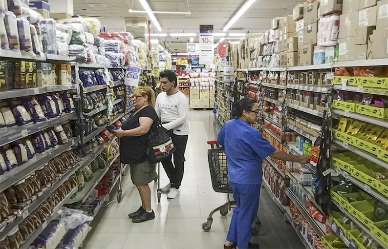 Según el Indec, en términos reales, los supermercados registraron una caída interanual del 3,1%, los mayoristas, 1,2%, y los shoppings, 2,1%.