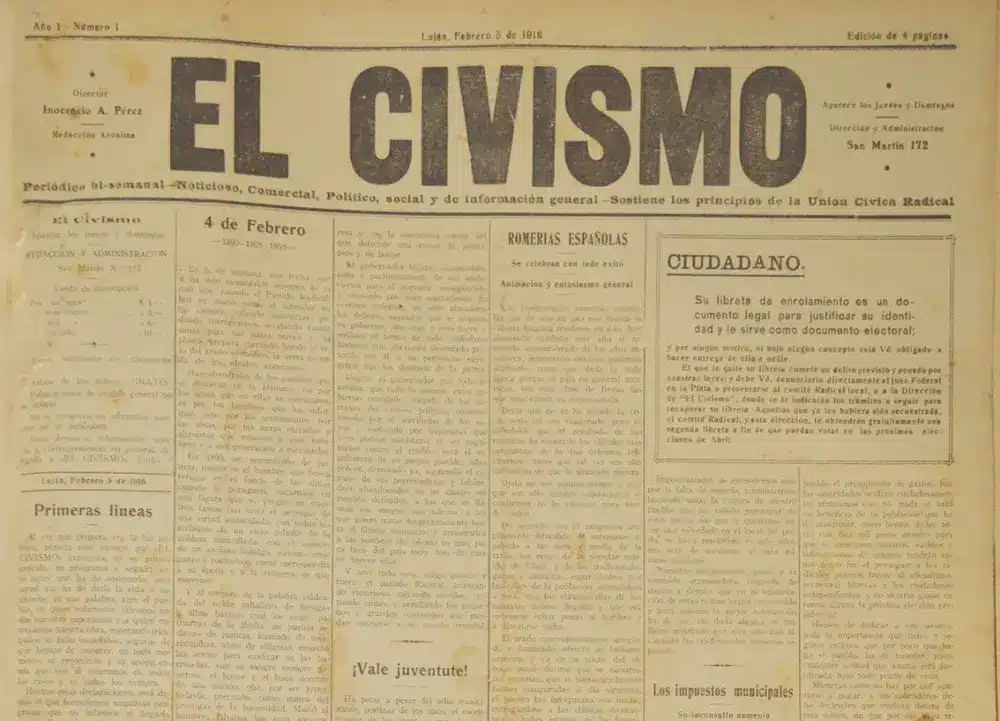 Su primera edición apareció el 3 de febrero de 1916. Una larga historia que desde hace varios años suma su versión digital (www.elcivismo.com.ar) y diferentes cambios que le otorgan plena vigencia en el periodismo lujanense. En sus orígenes el periódico fundado por José María Pérez y dirigido por su hermano Inocencio era bisemanal de 4 páginas que se imprimía en la Capital Federal, y llegaba a Luján dos veces por semana.