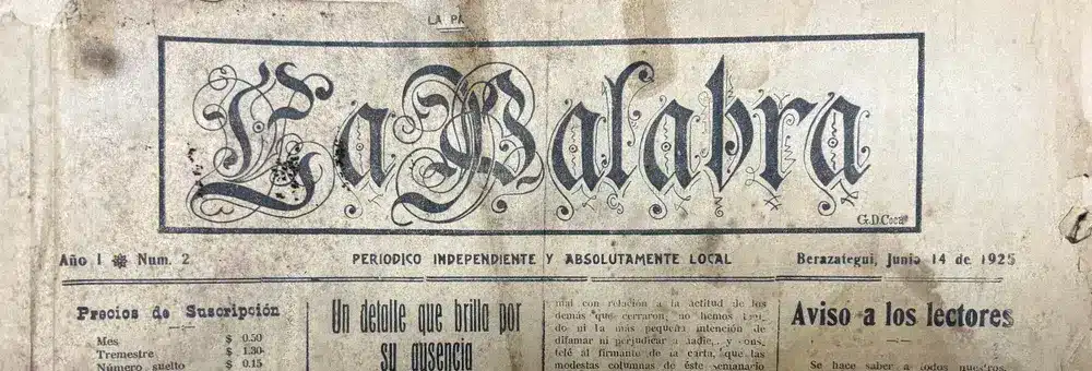 Fundado el 7 de junio de 1925 por Braulio Dimas Etcheverry, su precio era de 15 centavos por edición (era semanal), 0,50 por todo el mes y 1,30 el trimestre. Debajo del nombre -La Palabra- decía a modo de declaración de principios “Periódico independiente y absolutamente local”.