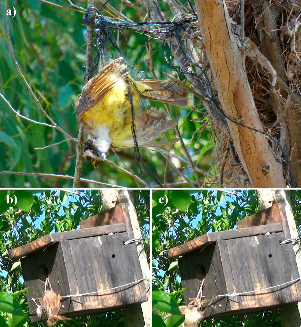 Los investigadores reportaron diferentes daños asociados al plástico: un juvenil de benteveo muerto, lesiones en pichones y estrangulamiento de un adulto del ave coludito copetón.