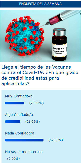 Indudablemente, el tema no tiene que ver con la vacuna que todos la deseamos aparezca, que sea muy efectiva y que no deje secuelas; sencillamente creemos y entendemos que esta postura de la encuesta tiene mucho que ver con “los promotores a vacunarnos”, que se los ve “parte del negocio”.