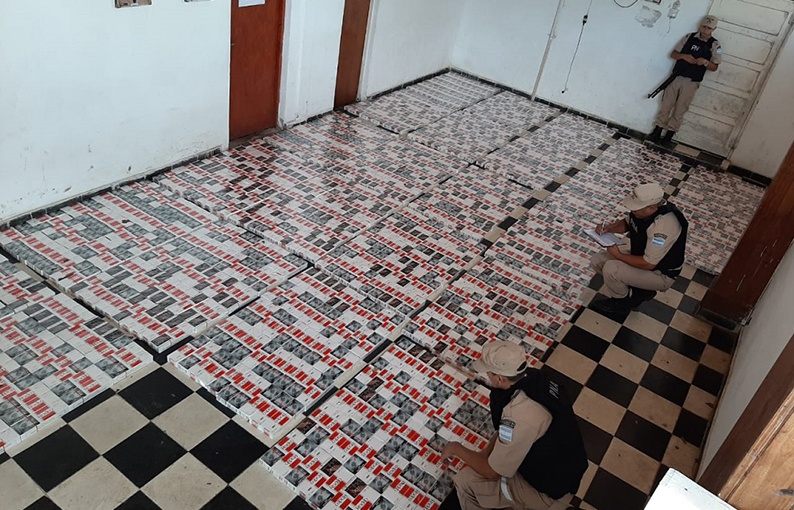 El procedimiento tuvo lugar a la altura del kilómetro 1283 del río Paraná, en un zona conocida como Guayú, cuando personal de la fuerza encontró 24 cajas de cigarrillos de industria paraguaya, escondidos entre la densa maleza, listos para ser ingresados ilegalmente al país.