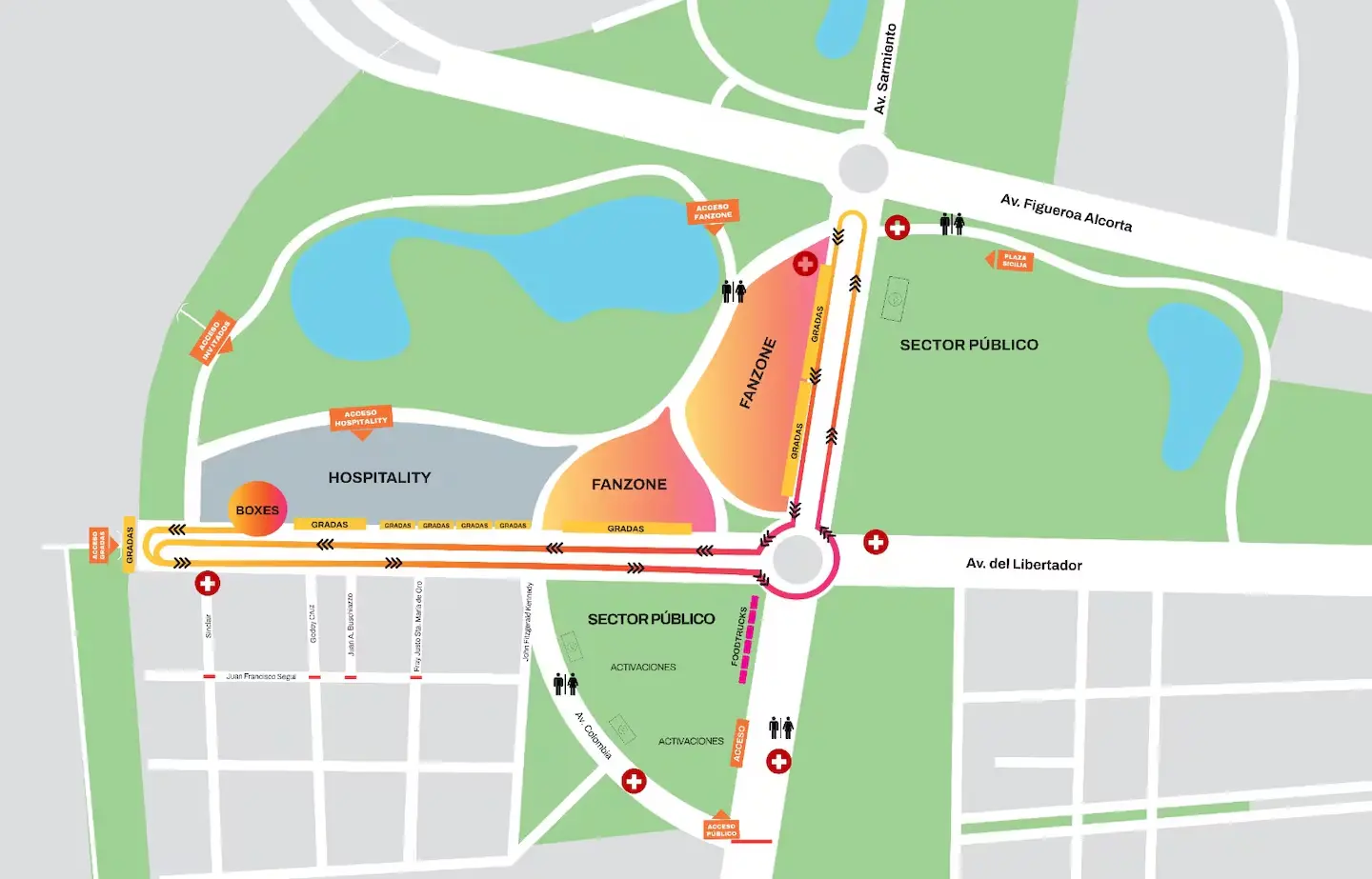 • Sectores exclusivos a la venta, incluyendo Fan Zone, Grandstands y Hospitality con acceso diferenciado y vistas únicas de la pista.